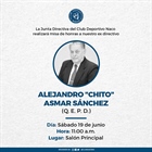 La Junta Directiva del Club Deportivo Naco, Inc., pasa por la pena de informar del fallecimiento de nuestro pasado Presidente, propulsor deportivo, y Naqueño de Corazón, el Dr. Alejandro Asmar Sánchez “Chito”.